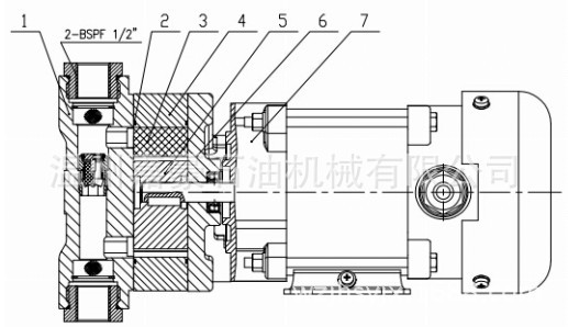 1、泵體2、O形圈3、葉片4、泵環(huán)5、轉(zhuǎn)子6、端蓋7、電機(jī)